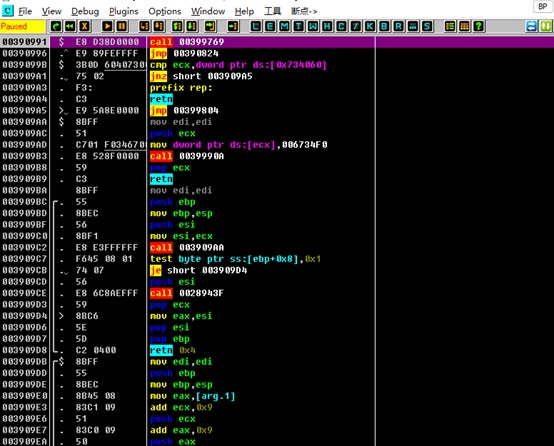 4.按下反編譯按鈕后,OD會暫停在SENDMESSAGEW函數上,一般停留在008F3DBC上下。聯系我們