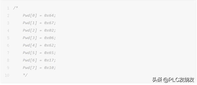 程序運(yùn)行后得到的Pwd數(shù)組如下所示,和速捷工控plc解密截取到的報(bào)文一致。從而說(shuō)明速捷工控plc解密找到的算法是正確的。