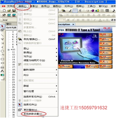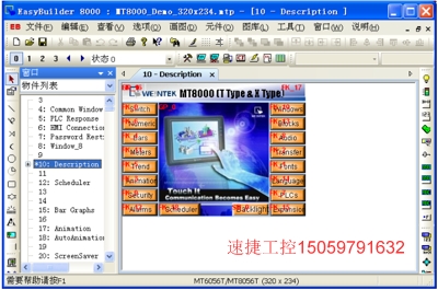 1、 下圖為轉(zhuǎn)換前的程序畫面,其型號為 MT8056T(320×234)。